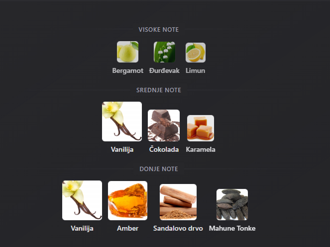 Ovo je novi parfem. Vanilla Aura je predstavljen 2025. Gornje note su Bergamot, Đurđevak i Limun; srednje note su Vanilija, Čokolada i Karamela; bazne note su Amber, Sandalovo drvo, Vanilija i Mahune Tonke.